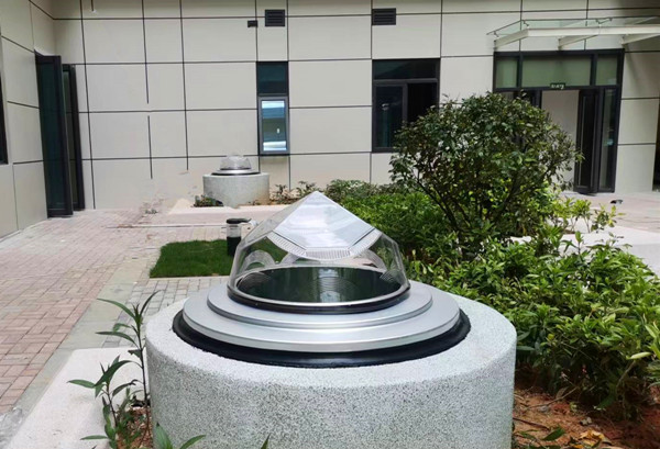 钻石型采光器和平板型采光器结合医院建筑结构,错落有致安装在绿化带上和路面上,白天望去不失为一道靓丽的风景线;夜间还可以发出景观亮化效果,除了照明还能给医院营造出温暖的氛围感!