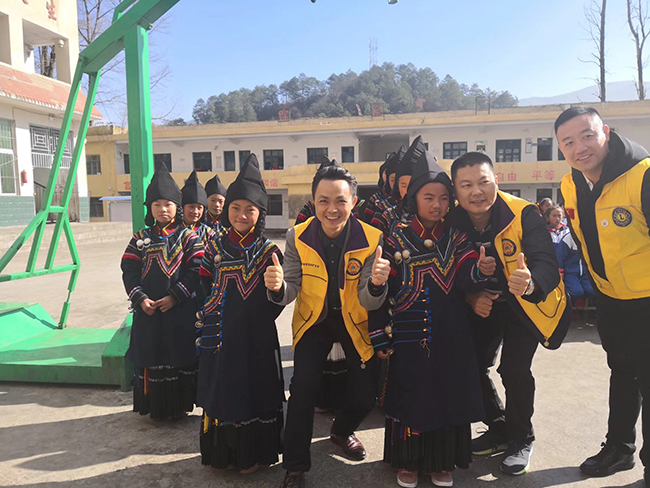 当地村民们非常热情的欢迎前来捐赠的狮兄狮姐们