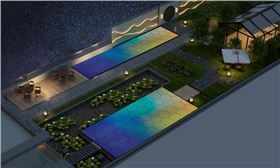 在日光的照耀下,光能发电地砖如同一片片熠熠生辉的宝石,为别墅增添了无尽的光彩。而到了夜晚,这些地砖则化身为节能的照明设备,将储存的电能转化为柔和的光芒,发出五颜六色的光线,为别墅营造出温馨而宁静的氛围。