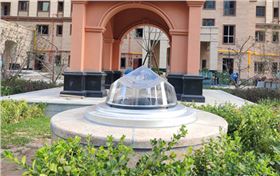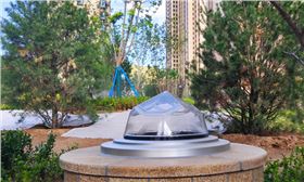 花型和圆形的蹲座与光导管采光系统钻石型采光器相得益彰,极具艺术气息,瞬间就拉升整个小区的绿色景观品位!目前为止,笔者也是第一次见到大理石花型的墩座,高档小区配置就是高规格!