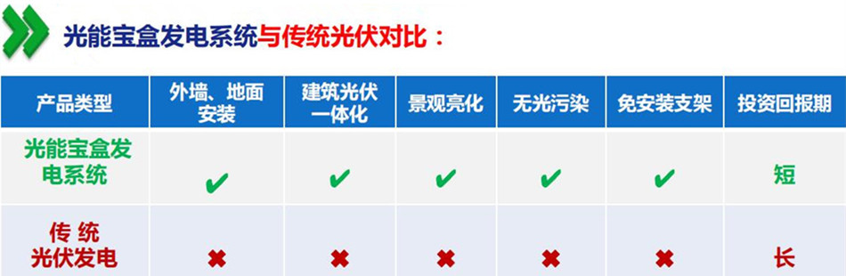 ③白天发电,自主为整个建筑提供电能,让每个建筑都可变成绿色能源站;晚上还可以发出五颜六色的景观亮化光线,实现建筑物的景观亮化效果。