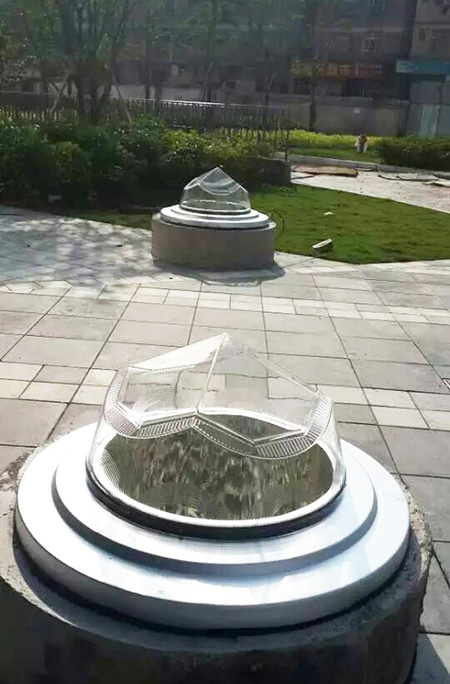 正能量科技无论是钻石形采光罩还是半球形采光罩,从设计美感上看都能与绿化带融为一体。是很多工程商将光导筒应用于地下空间时,偏爱的一种安装方式。