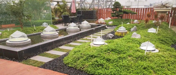 此外,光导照明系统在夜晚开启补光装置之后,夜间也会有景观亮化效果。晚上,夜晚,约上三五知己在这璀璨灵动的钻石灯光氛围上谈天说地,不失为一种恰意的享受。