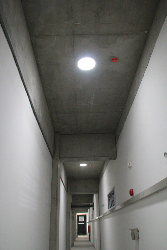 我们接着走进室内看一下照度。白天,光导照明系统提供的光照完全满足了工作的照明需要,我们特意拍了一组照片,里面可以清楚地看见,在不开电灯的室内,光线充足而柔和,在这种光线下工作让人感觉特别舒服。