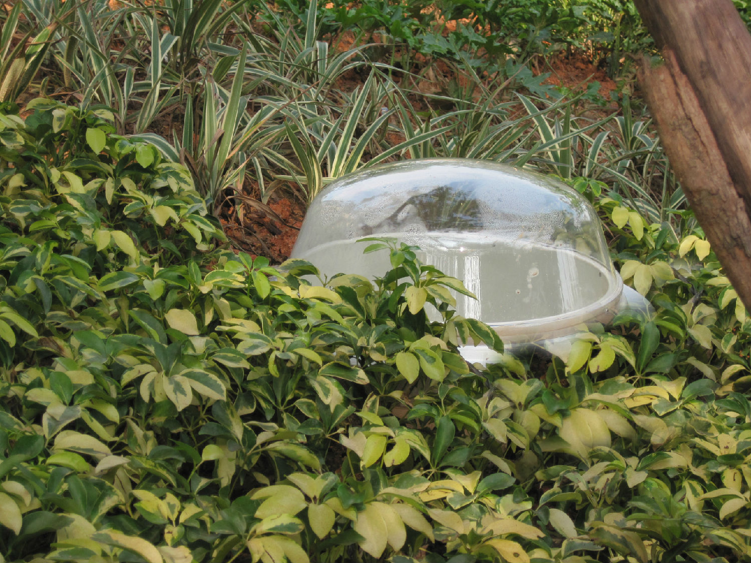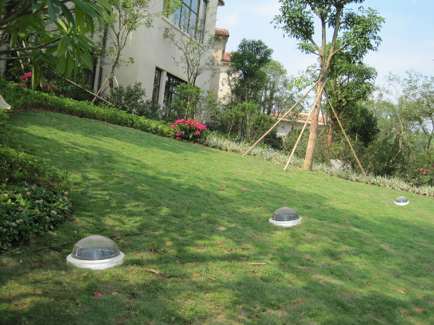 完美地与草坪融为一体的采光罩,既坚固又兼有装饰作用。