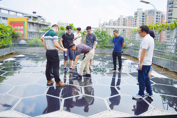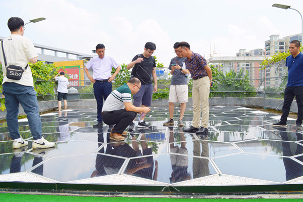 接着,专家团队们对光能宝盒发电系统进行了产品承载、景观亮化效果、产品互动等体验。光能宝盒发电系统适应各种建筑的屋面、立面安装条件,发电率比普通分布式光伏发电提高30%!可替代传统的屋顶砖、地板砖、侧墙砖,安装面积使用率高;特别是创意产业园、智慧园区等项目应用光能宝盒发电系统效果更佳,可以自由组合成各种样式,实现更多创意展现!