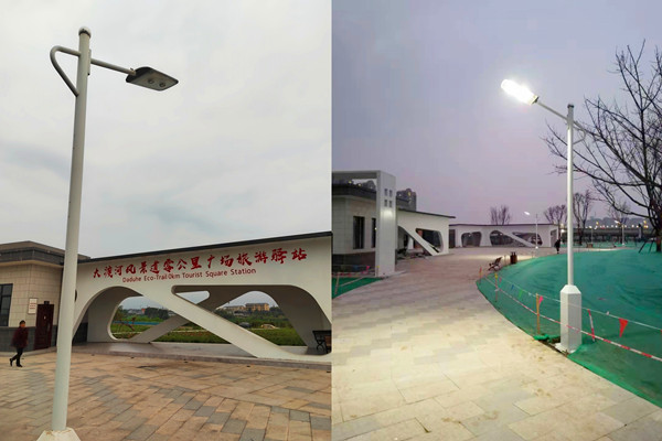 光能路灯白天发电+夜间照明效果(四川乐山零碳公园)