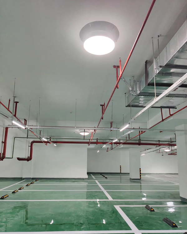 光导照明通过室外的采光装置捕获室外的自然光,经过光导装置强化并高效传输到漫射器,均匀地导入地下停车场,使得停车场的光线一直保持充足。室内外光线效果反差小,从而降低车辆摩擦的概率。