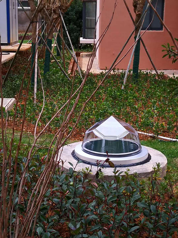 光导照明系统的加入成了小区景观的一大亮点,钻石型采光罩与小区景观相结合相得益彰,通过该系统将自然光导入地下停车场,直接省去白天的电力消耗,实现节能减排与绿色照明!