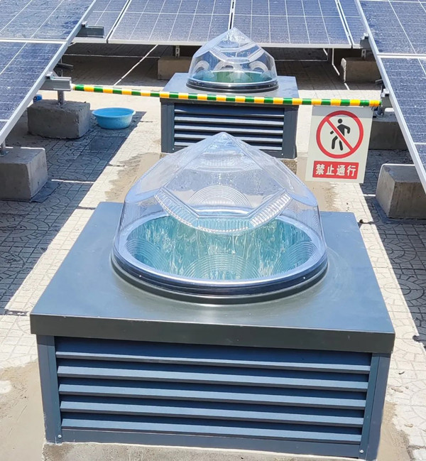 夜间模式:白天光线直接引入的同时,由光伏板同步发电,所发的电能留到晚上给室内进行照明。