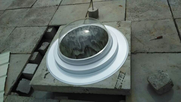 安装的时候咱们忍不住给采光罩来了个特写,大家都知道香港正能量的采光罩是由特警盾牌的类似PC材料经由一系列特殊处理制造而成,在尘土飞扬的施工现场,采光罩依旧光洁可鉴,一丝灰尘都没有哦!后期更是免人工维护,风吹雨淋即可自净!