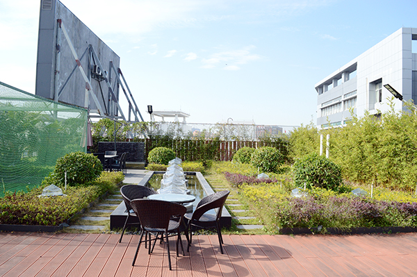 钻石型采光罩与绿化相结合,夜间还能达到景观亮化效果