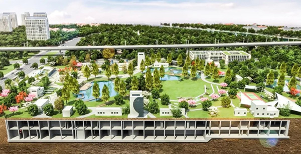 武汉长江新城谌家矶再生水厂位于湖北省武汉市长江新区,总投资估算148050.44万元,总面积约6.7万平方米,长204.8米、宽170.2米,相当于近10个足球场大小;水厂为地下二层布局双层加盖结构,地上是公园;负一层为操作区,负二层为各个水处理构筑物功能区,主要包括MBR膜池、膜设备间、生物反应池、消毒池、出水泵房、预处理区和污泥浓缩脱水间等。谌家矶再生水厂是长江新区率先启动的“两路一厂”重大民生项目之一;工程于2020年9月动工建设,计划于今年6月投入试运营。